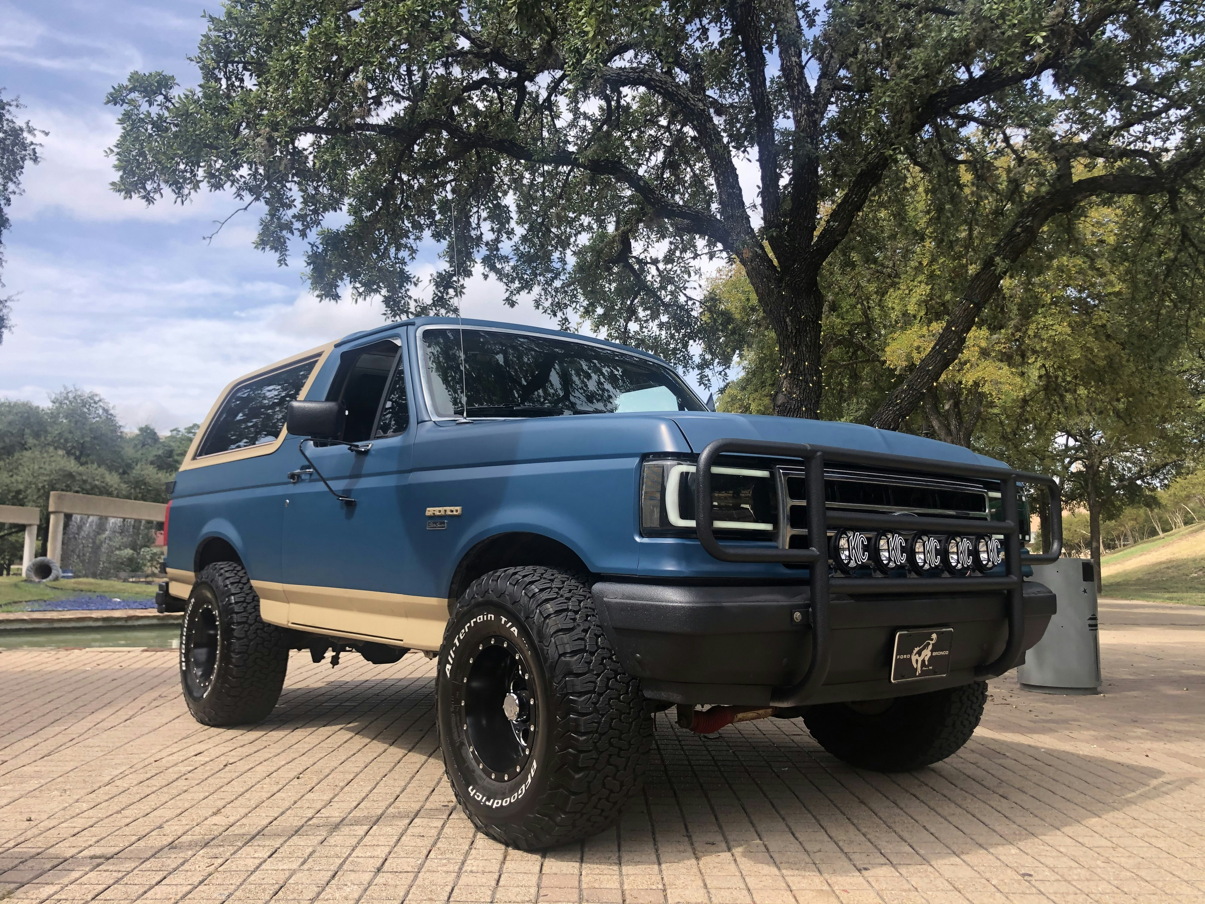 While working on the exterior, Bryan hit another minor snag. “The cattle guard was in the way and the bolts were seized,” he said. “I sprayed WD-40 on the bolts and waited about 10 minutes. Afterwards I was able to remove the bolts and continue with the project.” After touching up some bodywork he gave the Bronco a new paint job, a striking blue like the blue & yellow cans that helped him on the journey.