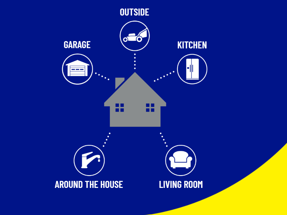 In the “Home” section you can choose from five different areas including the kitchen, living room, garage, outside, and around the house. With visual aids to assist with selecting different uses, you’re only a few clicks away from discovering what product will serve you best with the task at hand. While most of the recommendations come from the WD-40 Brand, don’t be surprised if you encounter a few particular usages from partner brands such as Spot Shot® Instant Carpet Cleaner for dealing with tough stains and 3-IN-ONE® Garage Door Lube for lubricating the moving parts of your garage door.