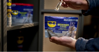 - WD-40 Specialist® Cleaner and Degreaser EZ-Pods: Greasy wheels, gears, floors, and surfaces, including concrete and stainless steel. Dissolve one pod in 32 ounces of water (add an extra pod for a stronger concentration). Pods allow you to customize the concentration for your application. Put the mixture in a trigger spray bottle for application. Spray and let sit for about a minute then rinse/wipe off with water. It works on machinery, commercial kitchens and sensitive surfaces like rubber and neoprene