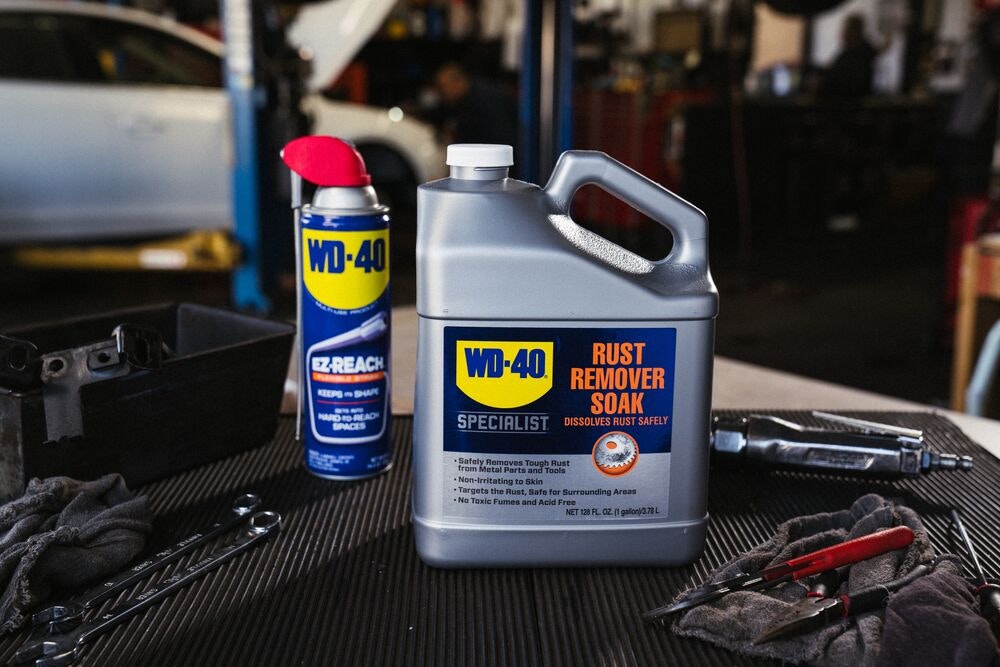 In Short: WD-40 specialist Rust Remover Soak works faster, safer, and preserves the integrity of your tools and parts.