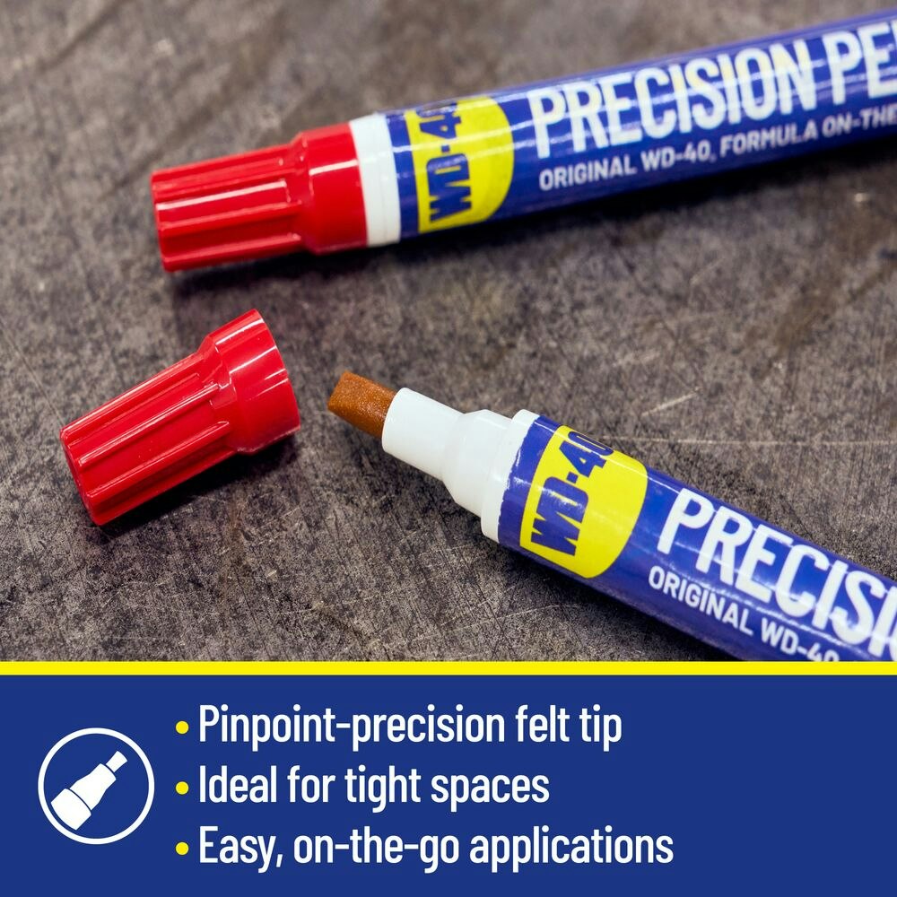 Unlike traditional sprays, the WD-40 Precision Pen is all about accuracy. With its easy-to-hold design and controlled flow applicator, you can apply just the right amount of the Classic WD-40 Product exactly where you want it, without overspray. Think of it as the perfect glovebox companion: compact, versatile, and ready for whenever you need it.