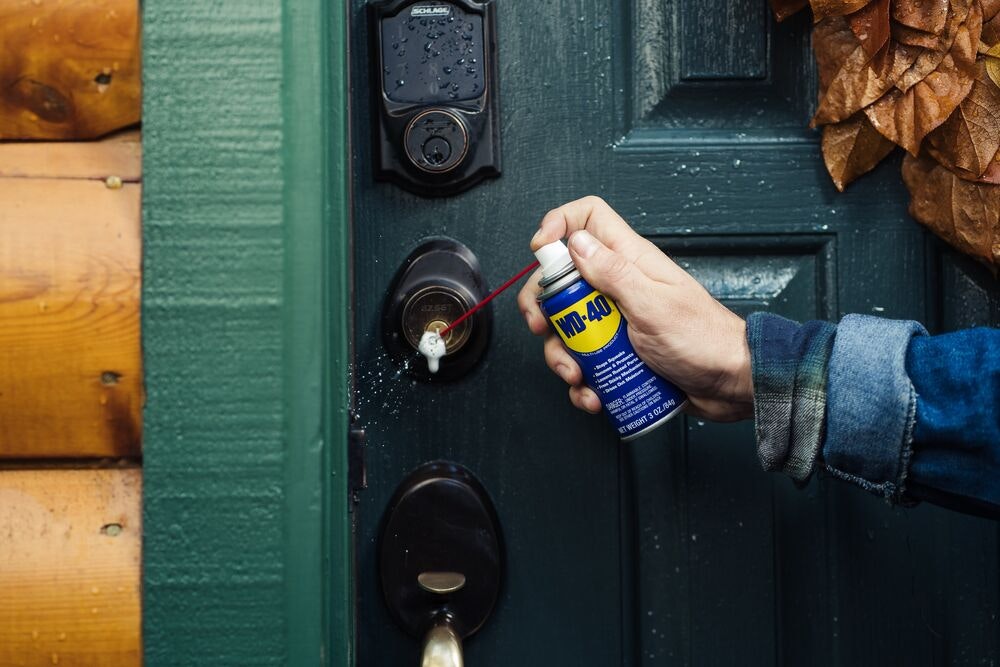 Deadbolts have a knack for sticking right when guests are waiting outside. Spray into the keyway and along the bolt mechanism, then turn the key a few times to distribute the lubricant and restore smooth locking.