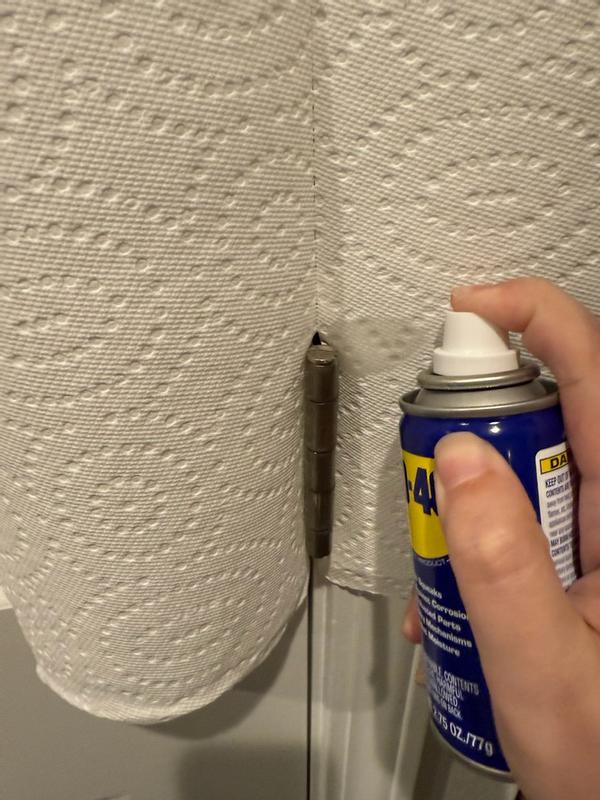 WD-40 Multi-Use Product is a powerful grime buster. Dirty, squeaky hinges clean up fast, thanks to the famous blue and yellow can.