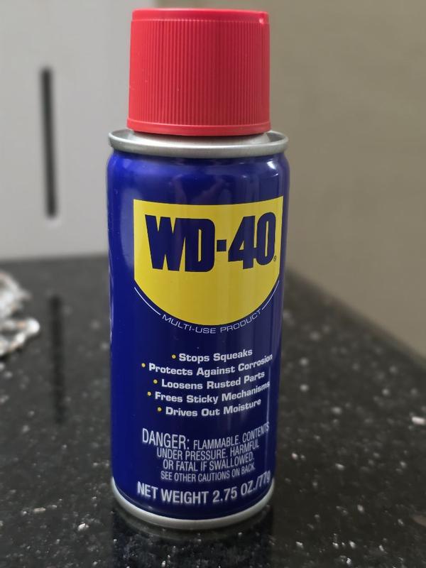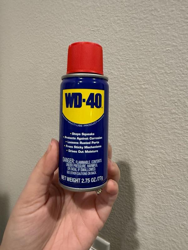 WD-40 Multi-Use Product protects metal from rust and corrosion, penetrates stuck parts, displaces moisture and lubricates almost anything. The WD-40 Multi-Use Product 2.75oz Handy Can is the perfect travel-sized problem solver.