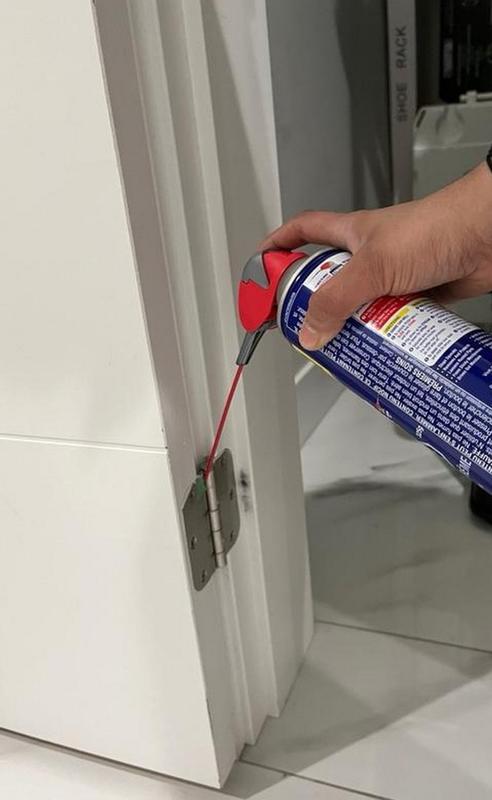 WD-40 Multi-Use Product Low Odor is an excellent tool for use in and around the home on cabinet hinges, door and window tracks, and under sinks.