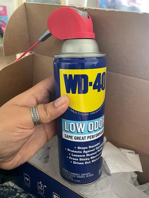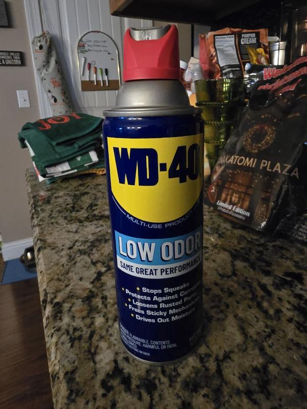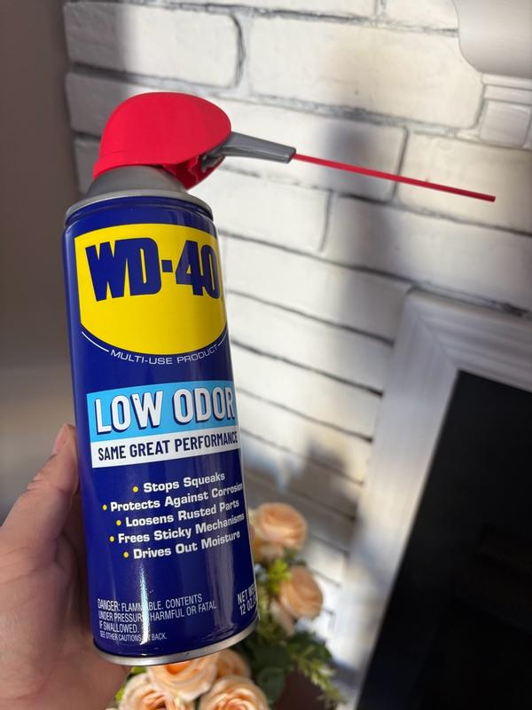 Meet WD-40® Low Odor — the Classic WD-40® Product you trust, now with less smell. Whether you're dealing with squeaky hinges in a confined space or a sticky gear shift in a car, WD-40® Low Odor ensures the same great performance of the Classic WD-40® Product with less smell.