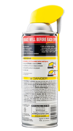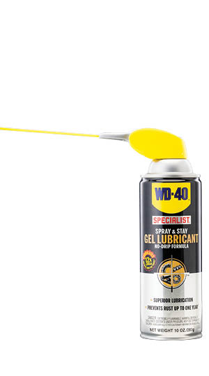 WD-40® Specialist® Spray & Stay Gel Lubricant No-Drip Formula offers 12 times longer-lasting lubrication compared to WD-40 Multi-Use Product. This unique spray gel lubricant stays where you spray, making it ideal for use on vertical surfaces and moving parts. This thick formula also prevents rust for up to one year.* Great for gears, bearings, cables, chains, rollers and more without making a mess. Effective in-use temperatures ranging from -100° F to 500° F. Safe on multiple surfaces including metals, plastic and rubber.