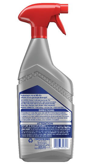 WD-40 Specialist® Bike Cleaner is a biodegradable foaming wash that is easy-to-use and safe on all parts and surfaces. Experience the difference of a professional-grade formula that is powerful enough to help remove embedded grease and grime to prevent component wear, damage and surface scratching. Safe for use on all bike surfaces including carbon fiber, titanium, chrome, steel, aluminum, rubber and plastics.